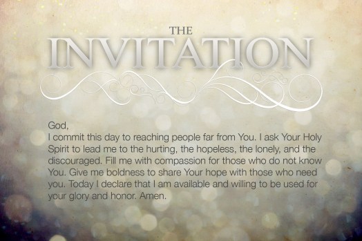 Over the next 30 days the people of Connection Church will be praying the Invitation Declaration. I can’t wait to see what God does through His people as we step out in faithful obedience.