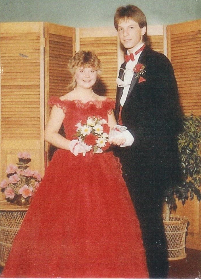 Yes, that’s me, sporting a sweet mullet, with my beautiful prom date, Laura.