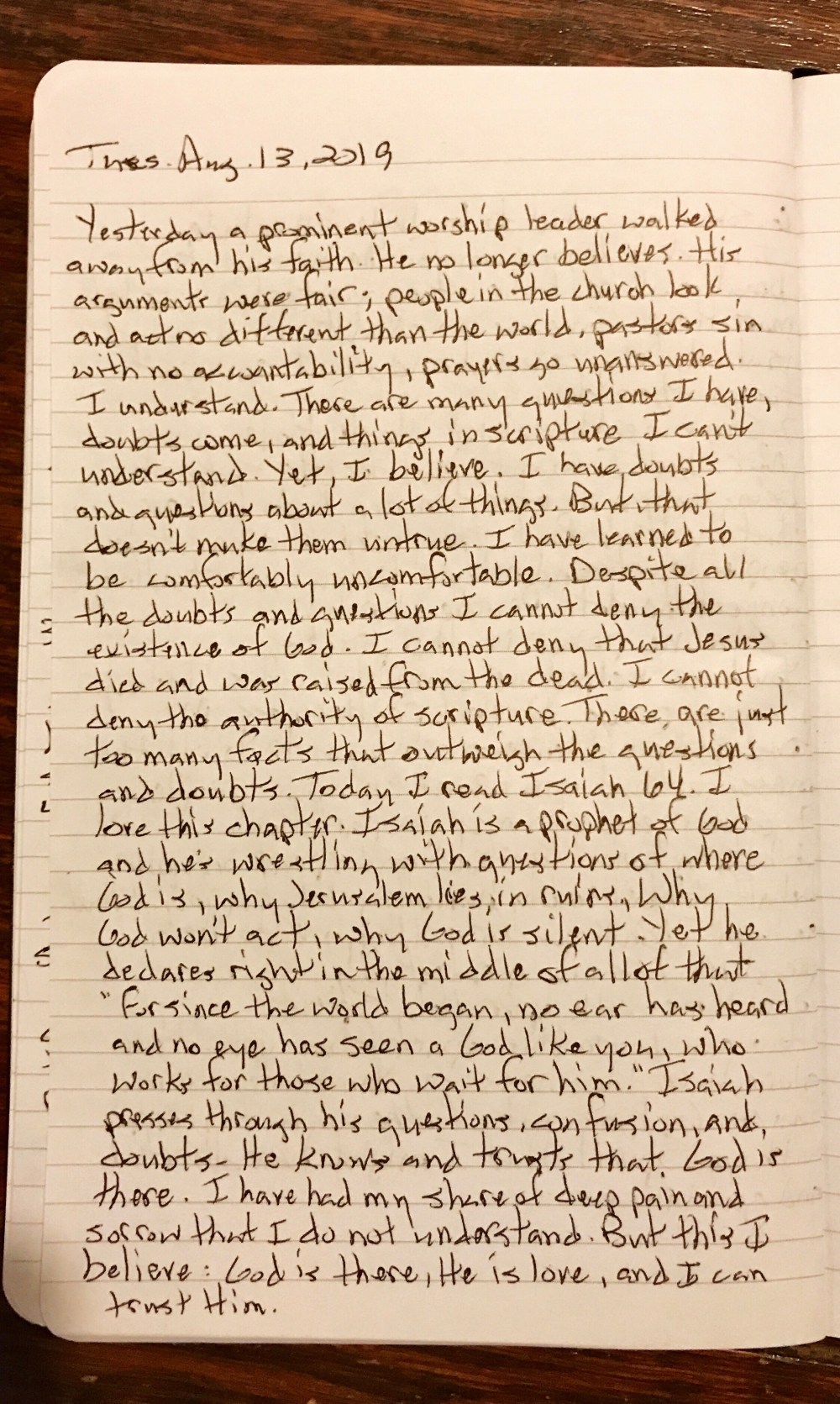 Journaling is a regular practice for me. It’s the place I am most raw and real before God. So, rather than write out a post, I thought I would just share my journal entry from this morning. I hope it encourages you…